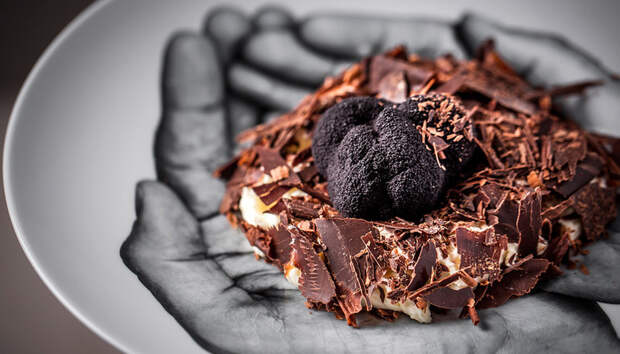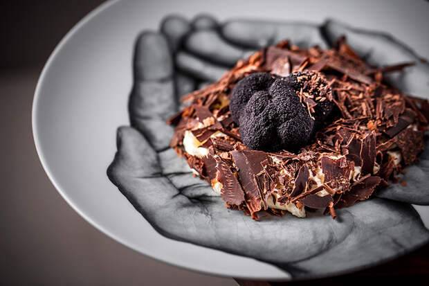 Такого нам, конечно, не надо. Хотя вот Twins Wine Space выглядит почти как Том Форд, но с настолько адекватными ценами на вино, что Том Форд быстро превращается в Хью Гранта, а там уже и до Джонни Деппа недалеко. И вот эти тарелки Bernardaud в баре, которые я бы унесла домой, но я ни одной вилки еще ни разу не утащила из ресторана, сразу начинать с тарелки трудно. И вот на этих прекрасных, не побоюсь этого слова, тарелках Bernardaud теперь подают новое меню, обильно присыпанное черным трюфелем. Камчатский краб идёт с печенным на углях картофелем и черным трюфелем, говяжью вырезку дополняют жареными артишоками и трюфелем, цыпленка на вертеле с гратеном из топинамбура оттеняют трюфельным же муссом, а на десерт – «Черный шоколад/Пармезан/Черный трюфель». Вдобавок шеф-сомелье Twins Wine Space Константин Носач подобрал к новинкам вина, призванные расцветить ваш вечер новыми красками - предлагаются винтажи пьемонтских вин с земляными и грибными нотами, и молодые красные, и яркие белые: линейка довольно обширна, насчитывает более полутора десятков названий.