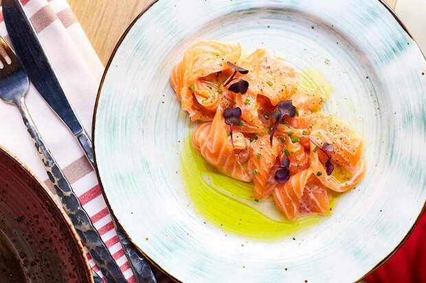 В «Рыбторге» хорошо сидеть с подругами и заливать «трещинки» на сердце изысканным игристым, заедая его идеальными сашими.