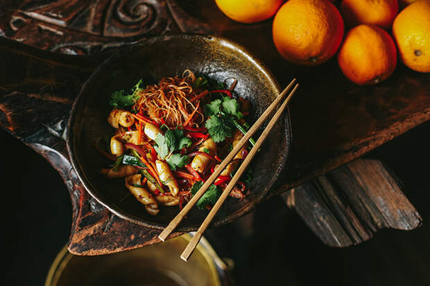 Зима бабахнула неожиданно (для меня уж точно), но теперь с утра хочется одеться потеплее, а в обед перекусить чем-нибудь посытнее. К похолоданию шеф Mr. Lee Александр Гололобов ввёл в меню целую дюжину разновидностей азиатской лапши. Предлагается широкая рисовая лапша Пад Тай на воке с курицей или с морепродуктами, китайская стеклянная лапша с овощами или с крабом, яичная лапша по домашнему китайскому рецепту с курицей, с говядиной и с креветками. Есть в наличии и японский удон с говядиной, маринованной в особом соусе. Если важен баланс остроты, выбирайте яичную лапшу с говядиной и брокколи под перечным соусом или рисовую лапшу с кальмарами и соусом чили.