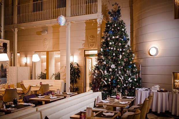 В особняке на набережной Мойки, где сейчас располагается отель Domina St. Petersburg, 2020-й приглашают проводить у пятиметровый красавицы-елки в лобби и затем красиво поужинать в номере, где вам накроют новогодний стол. С 1 января начнутся тематические кинодни: рождественские фильмы разных стран мира можно будет посмотреть под коктейль, который вас заблаговременно научат смешивать на мастер-классе. А с 21:00 — живая музыка.