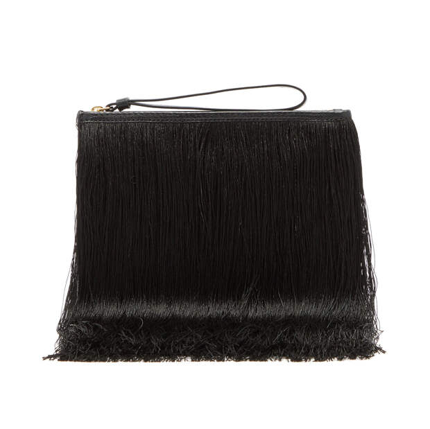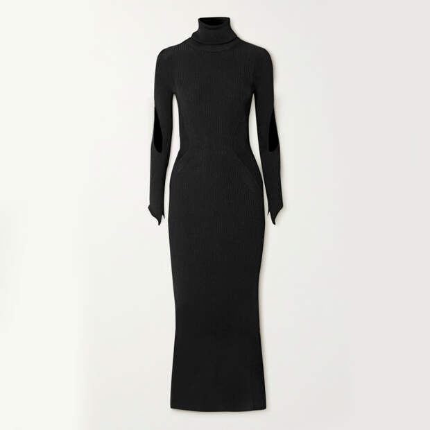 Лучшие варианты на выбор: базовое черное платье от Matteau без лишних деталей, с трендовой длинной бахромой от Bottega Veneta, или с сексуальными модными разрезами и высоким горлом от Mugler.Сумка с бахромой