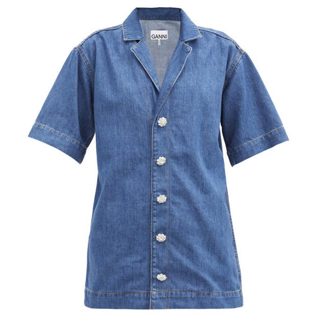 Наверняка все помнят знаменитый выход Бритни и Джастина в джинсовых тотал-луках — пожалуй, это самый наглядный пример того, как не надо делать в этом сезоне. Не стоит пытаться надеть сразу все в одной фактуре — это делает образ плоским и старомодным. В конце концов, вы же не хотите выглядеть так, будто полдня подбирали все оттенки джинсы друг к другу? Поэтому советуем ограничиться только одной, максимум — двумя вещами из денима в одном образе. Классика — это джинсы плюс рубашка или куртка из той же ткани. Впрочем, можно также сделать выбор в пользу, скажем, платья или комбинезона — это решит проблемы с подбором правильного сочетания. А мы постараемся решить еще одну важную проблему — с поиском лучших вещей из джинсовой ткани. В своей подборке мы уже собрали 7 лучших джинсов, рубашек, курток и даже одно платье — изящное приталенное Co. Все для того, чтобы вам не пришлось тратить долгие часы на походы по магазинам и изучение актуальных лукбуков. Лучшая куртка — у The Row: правильный оттенок и лаконичный крой делают ее настоящим объектом желания. Дизайн самой оригинальной рубашки однозначно принадлежит Balenciaga: рисунок в виде зеленых листьев очень оживляет голубую монотонность денима.