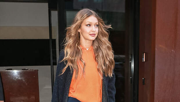 На репетицию шоу она отправилась в своих любимых велосипедках, которые дополнила оранжевым свитшотом, ботильонами на каблуках и длинным кардиганом вместо пальто.