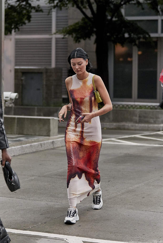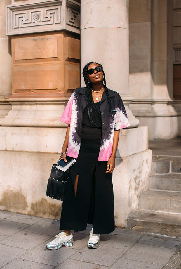 Хаотичные и размытые узоры по-прежнему выглядят в образах сочно и привлекательно. Главное здесь – ненароком не превратить модный аутфит в нечто инфантильное и комичное. Как это грамотно провернуть – узнали у героинь стритстайла.