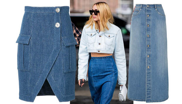 Не только трикотаж и кардиганы лучше выбирать из уплотненных тканей — юбки из плотного денима, к примеру, тоже сидят выгоднее на фигуре и отлично маскируют возможные недостатки, подчеркивая тонкую талию и зрительно уменьшая бедра. Джинсовые модели, к тому же, универсальны: они отлично смотрятся в паре с облегающими топами, хлопковыми футболками, шелковыми блузками, объемными свитерами и, особенно, в тотал-луках из денима.