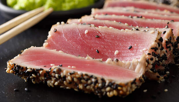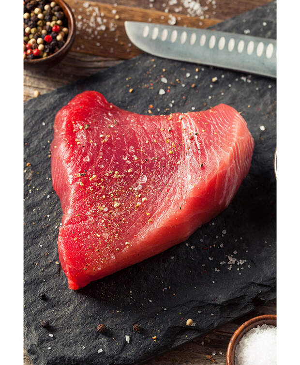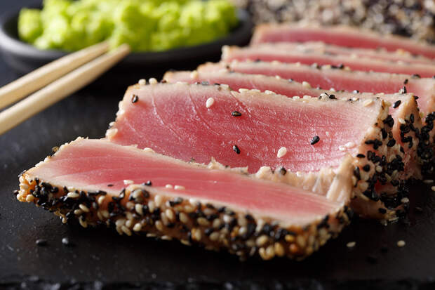 Почетное первое место досталось тунцу. В этой гонке (пускай и с небольшим отрывом) он обошел даже главного любимца всех адептов ЗОЖа - лосось. Тунец - богатый источник высококачественного белка. Он содержит все незаменимые аминокислоты и отлично усваивается организмом. Белок - главный строительный материал нашего организма, и его нехватка чревата проблемами со всеми системами - от сердечно-сосудистой до опорно-двигательной. Тунец содержит 21 г. белка на 100 г. продукта, а значит всего одна порция может обеспечить вас практически третью суточной нормы.