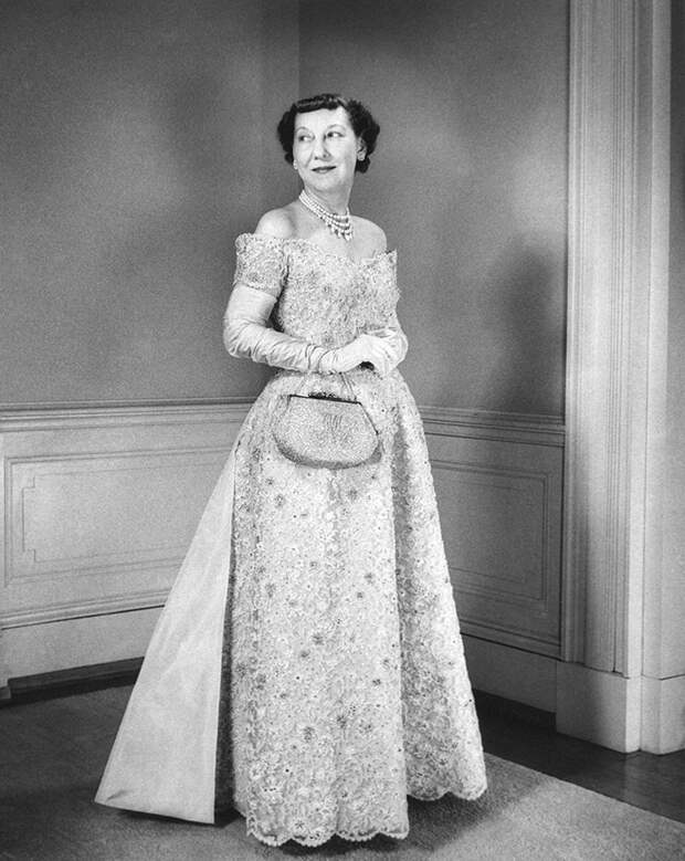 Супругу Гарри Трумэна трудно назвать самой стильной первой леди в истории США. Так, для инаугурации 1949 года она выбрала странного кроя платье из струящейся серебристой ткани, отделанное перьями. Автором «шедевра» была довольно известная в 1940-е и 1950-е годы дизайнер Пола Кострукофф, иммигрантка из России, которая считалась «придворным» портным при Белом доме во время правления Трумэна. Дизайнерские способности Полы мы не умаляем, но Бесс действительно выглядит в этом наряде несколько нелепо.