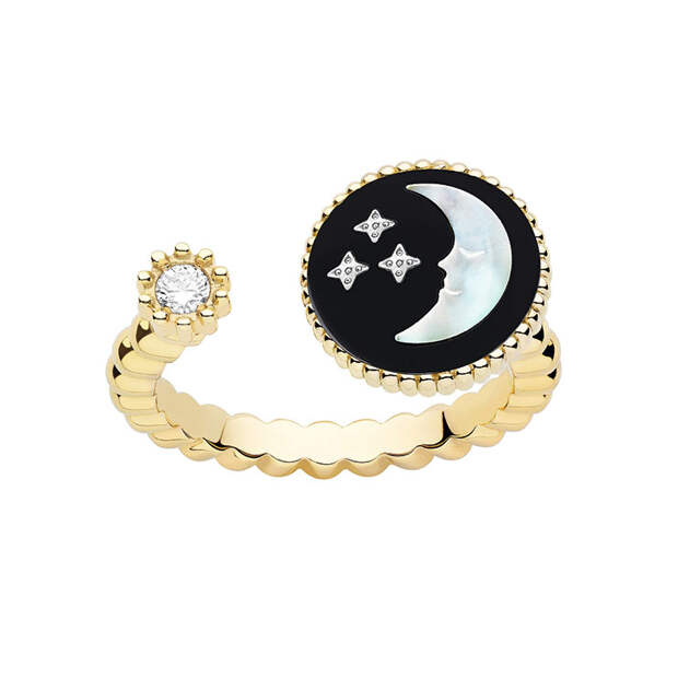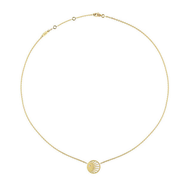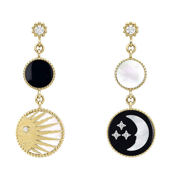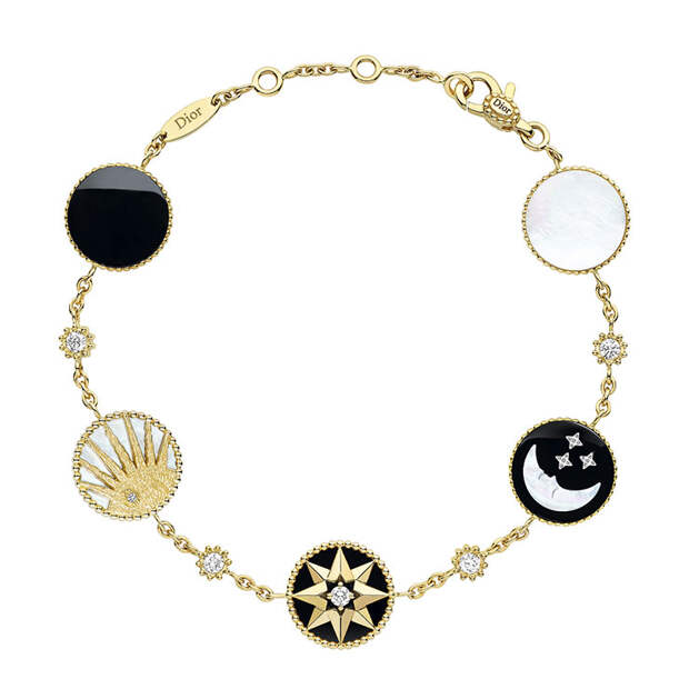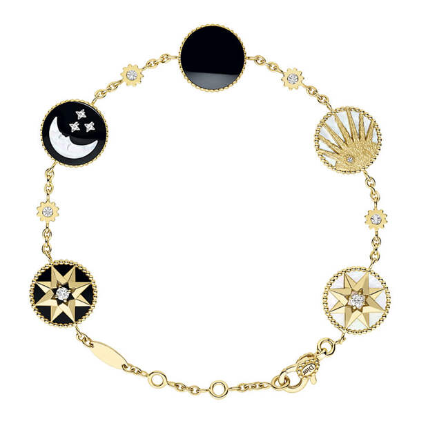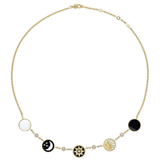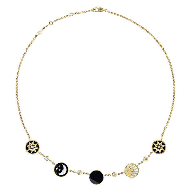 Впрочем, на его роль еще лучше подойдут тонкие колье Rose Céleste с изображением звезд и небесных светил. Их главный мотив – перламутровый серп месяца и ослепительные лучи золотого солнца – присутствует также на браслетах и серьгах.
