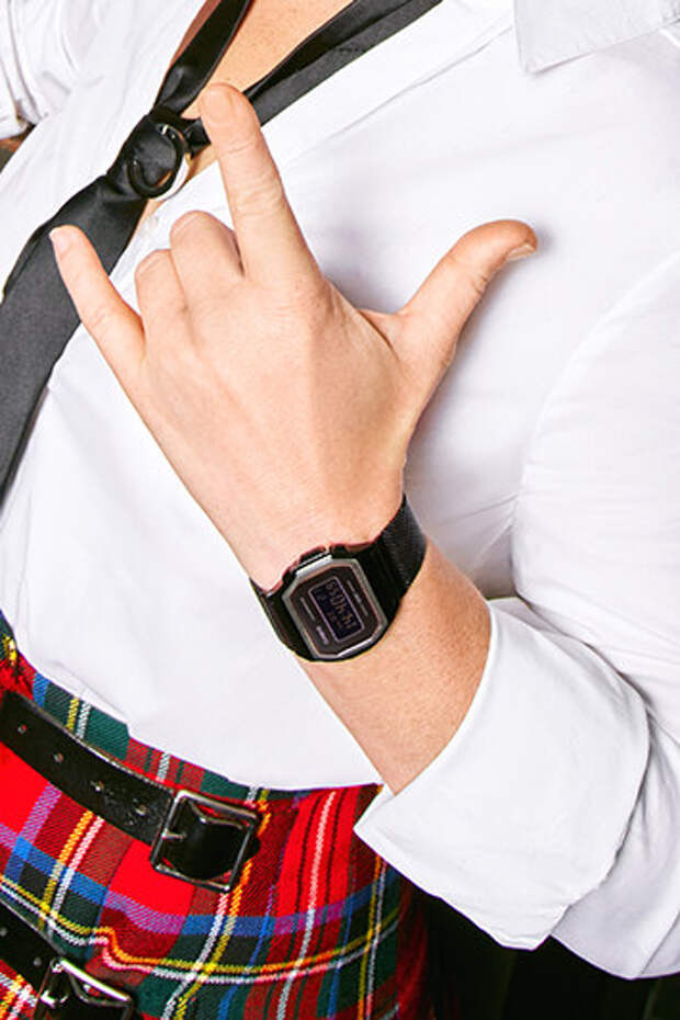 Приталенный силуэт и черные Casio Vintage Premium со стальным корпусом с серебристой окантовкой снизят градус драмы.В «Студию 54»
