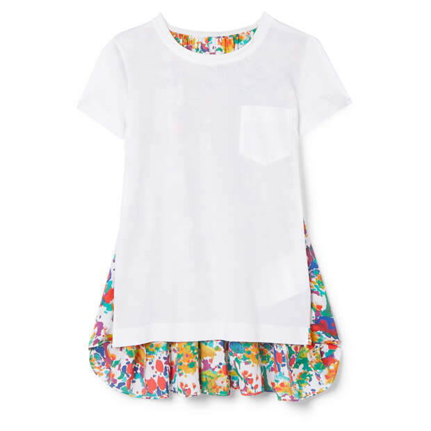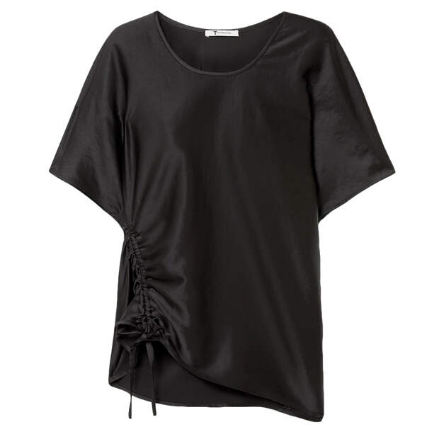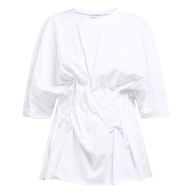 Базовая футболка — основа повседневных образов, ее можно носить с джинсами и классическими брюками, спортивными кедами и каблуками, в офис и на свидание. Но мы предлагаем пойти дальше и добавить немного юмора и эффектных акцентов к этой нейтральной вещи, не лишив при этом преимуществ универсальности.