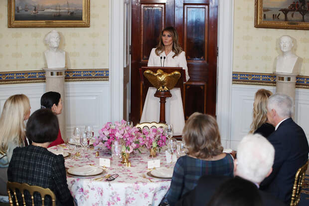 Мелания Трамп так любит лодочки, что готова носить их не только с юбками и платьями, но и с пальто. Первая леди устроила ланч для вторых половин губернаторов в Белом доме, чтобы обсудить ценность своей благотворительной программы Be Best. Эта кампания, организованная Меланией, борется с травлей в образовательных учреждениях и интернете, занимается просветительской деятельностью и помогает детям и подросткам найти призвание.