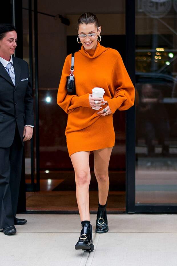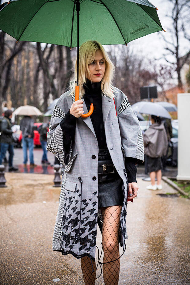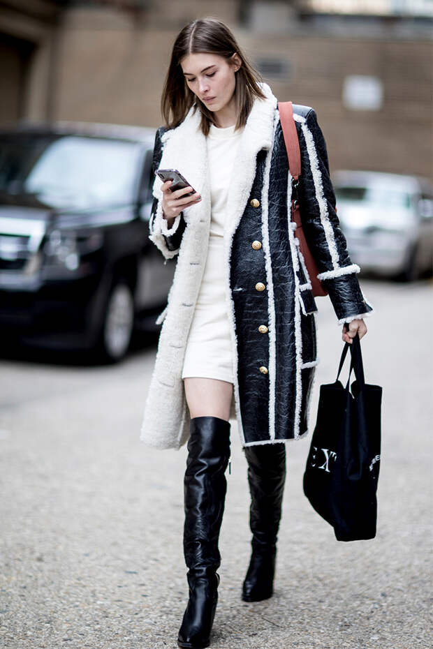 Для начала советуем обзавестись "правильной" обувью: это могут быть ботильоны-чулки на каблуке (носить их лучше с чулками в тон) или высокие и узкие ботфорты (наши фавориты — однотонные черные и со змеиным принтом). Платья или юбки выбирайте из плотной ткани: они и сидят, и согревают лучше. И, наконец, отдавайте предпочтение длинной верхней одежде — простуда еще никогда не была в тренде.