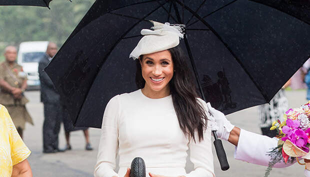 Следующая остановка австралийского тура герцога и герцогини Сассекских - Фиджи. Гарри и Меган прибыли в столицу Сува утром. С трапа самолета супруга принца спускалась в образе невесты - белоснежное платье, шляпка и лодочки. Если вчера Меган отгадала предпочтение демократичному бренду, то сегодня любовь к дорогим вещам вновь к ней вернулась.