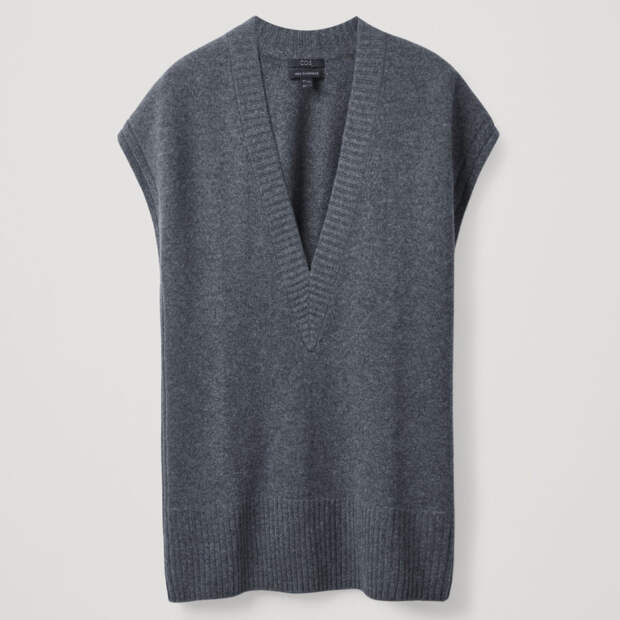 Заметным трендом стал классический V-образный вырез, который отлично подходит к просторным базовым рубашкам. Особенно гармонично он смотрится на жилетах-оверсайз. Впрочем, в этом сезоне актуальны и слегка облегающие модели. Их можно носить как с легкими блузами, так и в качестве самостоятельного верха. Добавьте широкий пиджак, мини-юбку и грубые ботинки — ультрамодный осенний образ готов.