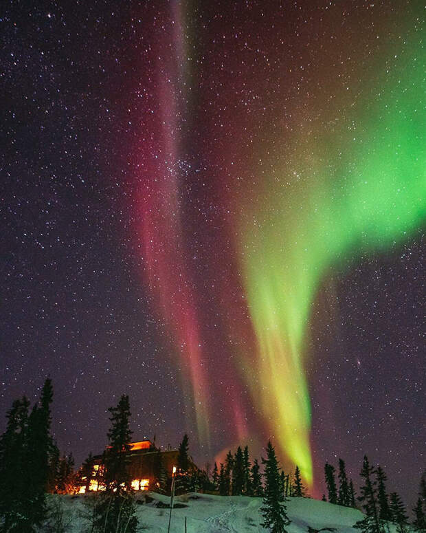 Город на севере Канады по словам очевидцев является одним из главных конкурентов Рованиеми для наблюдения за Северным сиянием.