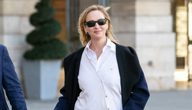 Париж всех немного превращает во француженок: Ума Турман сейчас гостит в этом самом романтичном городе на планете и уже явно попала под его чары. Конечно, актриса не щеголяет на его улицах в боди и мерцающих колготках, как Ким Кардашьян, но зато при помощи всего одной детали сумела добавить изюминку в свой повседневный образ.