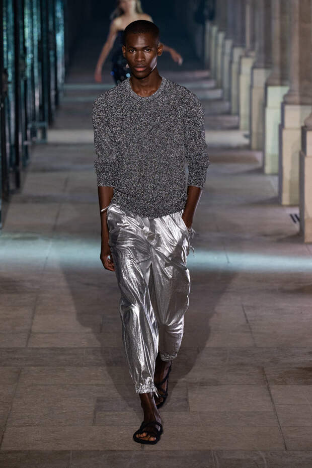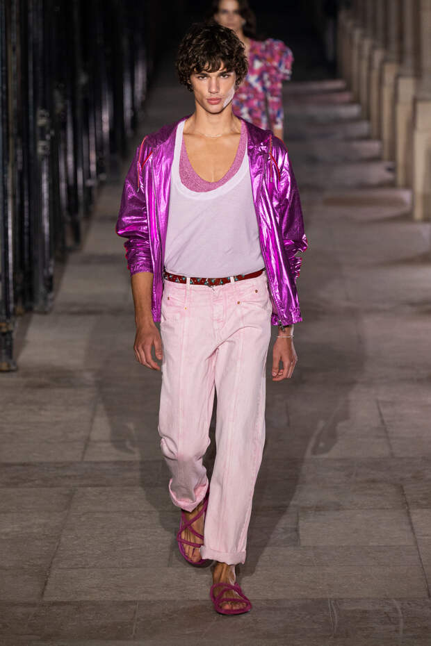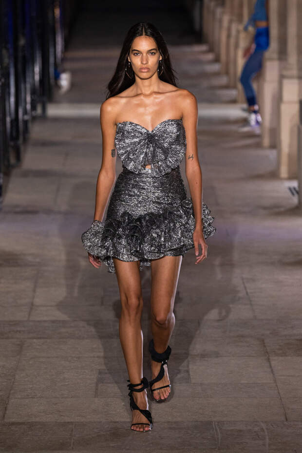 Обычно не сторонница драматичных перформансов, свой новый показ Изабель Маран решила открыть впечатляющим рейвом в духе фильма Гаспара Ноэ "Экстаз". Впрочем, в отличие от картины, в происходящем на подиуме не было ничего мрачного и пугающего: только праздник, объятия и много блеска.