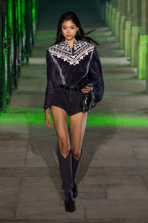 Это визитная карточка дизайнера, от которой она не может отступать: верные поклонники не поймут. За свою успешную карьеру она не только сформировала очень узнаваемую систему кодов своего бренда, но и фактически заново придумала новый парижский шик — без стереотипных тельняшек и беретов, зато с дерзкими мини, маскулинными жакетами и сапогами-казаками. А такая узнаваемость — главное из возможных достижений дизайнера, которым очень опасно рисковать. К тому же ее жизнерадостность сейчас имеет терапевтический эффект: искренние позитивные эмоции после долгих месяцев заточения ценны, как никогда.